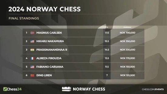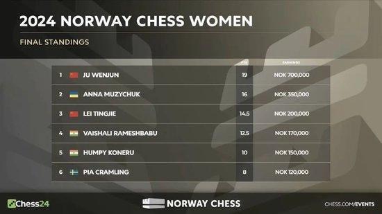 2024年挪威海外象棋大赛放置了终末一轮的较量体育赛事彩票,卡尔森和居文君区分赢得男人组和女子组的冠军。
